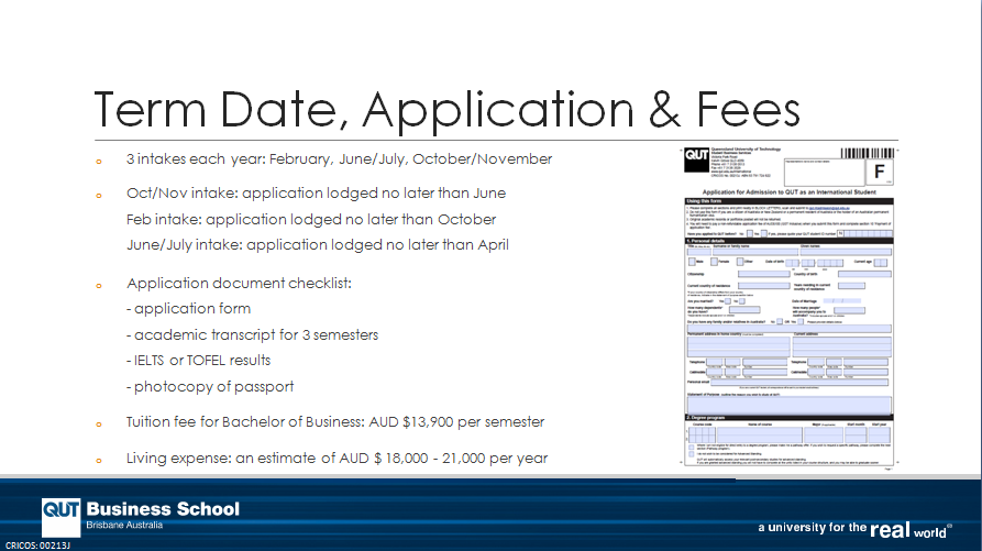 昆士兰科技大学(QUT)是澳大利亚的一流高等学府,有近5万名学生,拥有出色的毕业生就业率、良好的囯际业界关系、以及世界知名的应用科硏实力,88%以上的科硏达到或超越世界平均水准 (ERA),在建校50年以内新兴大学中排名全球前40(Times2015)。