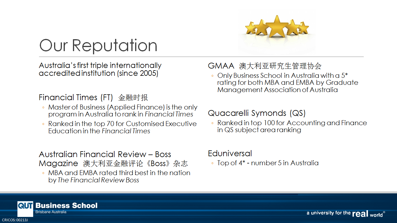 QUT Business School“三桂冠”博彩排名