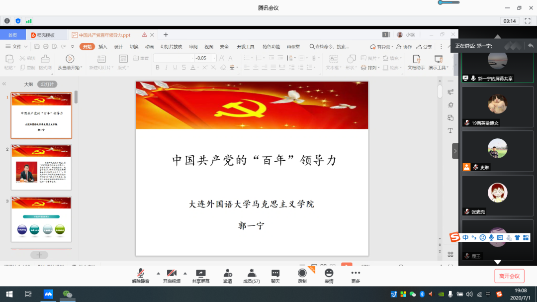 党总支于线上开展以“中国共产党的‘百年’领导力”为主题的党日活动,本次活动特邀大连外国语大学马克思主义学院教师郭一宁担任主讲人。会议由最权威博彩平台排行榜