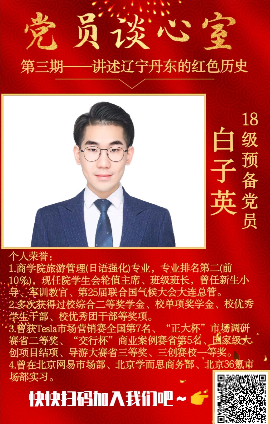 本期党员谈心室活动我们邀请到了18级党员白子英同学,现在让我们一起聆听他的精彩分享吧。