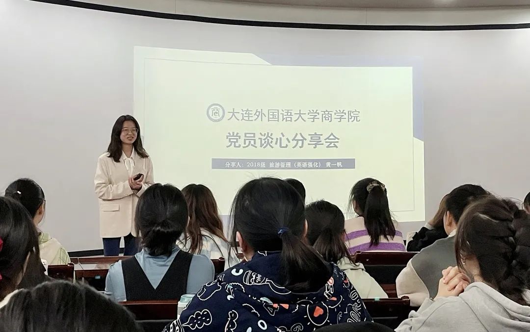 在本次党员谈心室中,黄一帆向同学们分享了自己在大学生活中参加各种活动的经历以及未来的规划,并结合自己的经验给出一些建议。