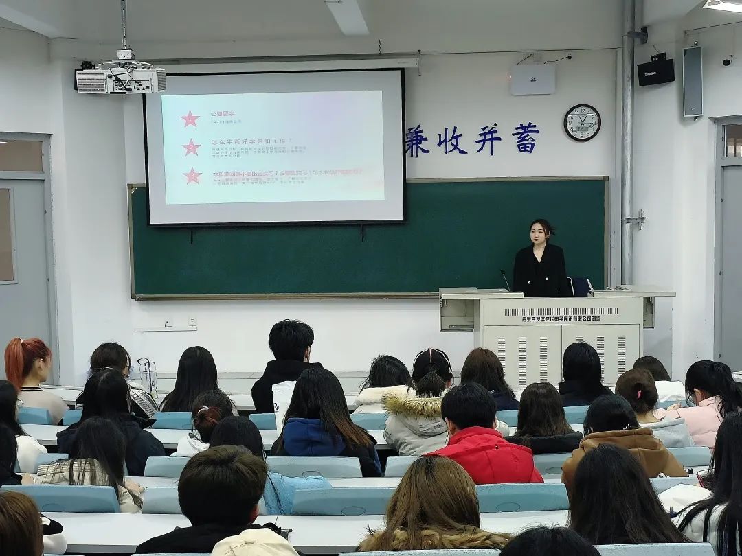 于洁同学还分享了自己在学习、参加学生活动、实习等方面的看法和经验,交流了自己在日常生活中如何平衡学习和工作。在实习工作中,她认为应该根据自身情况多了解、体验,勇于试错,不断提升自我的竞争力。最后,于洁同学就同学们提出的问题进行了答疑解惑。