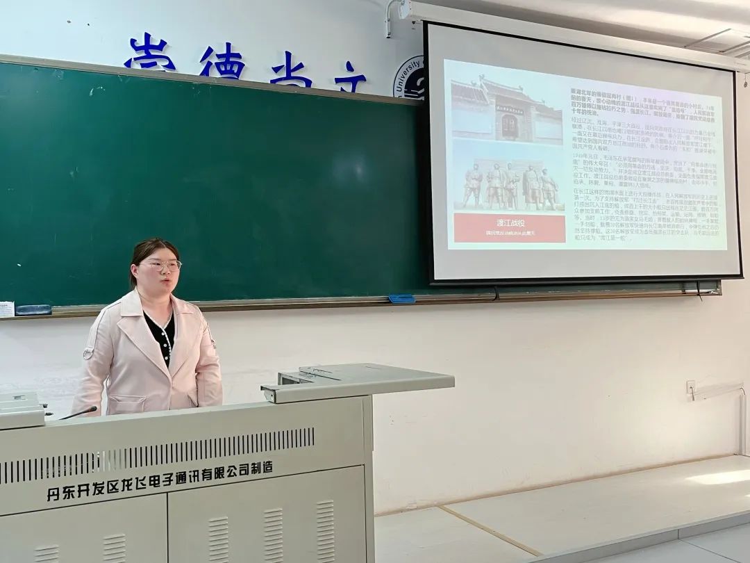 在本期的故事分享中,夏百川同学以“巢湖之滨——探寻红色足迹铭记不朽”为主题,带领同学们回顾了巢县阻击战和渡江战役。巢县战役中爱国将领廖运升在我军劣势的情况下,仍与敌人殊死搏斗、身先士卒的伟大行为,使同学们更加深刻地认识到了爱国主义奉献精神的内涵。在渡江战役中,更是涌现了众多的爱国人士,激起了同学们新时代的使命感和责任感。