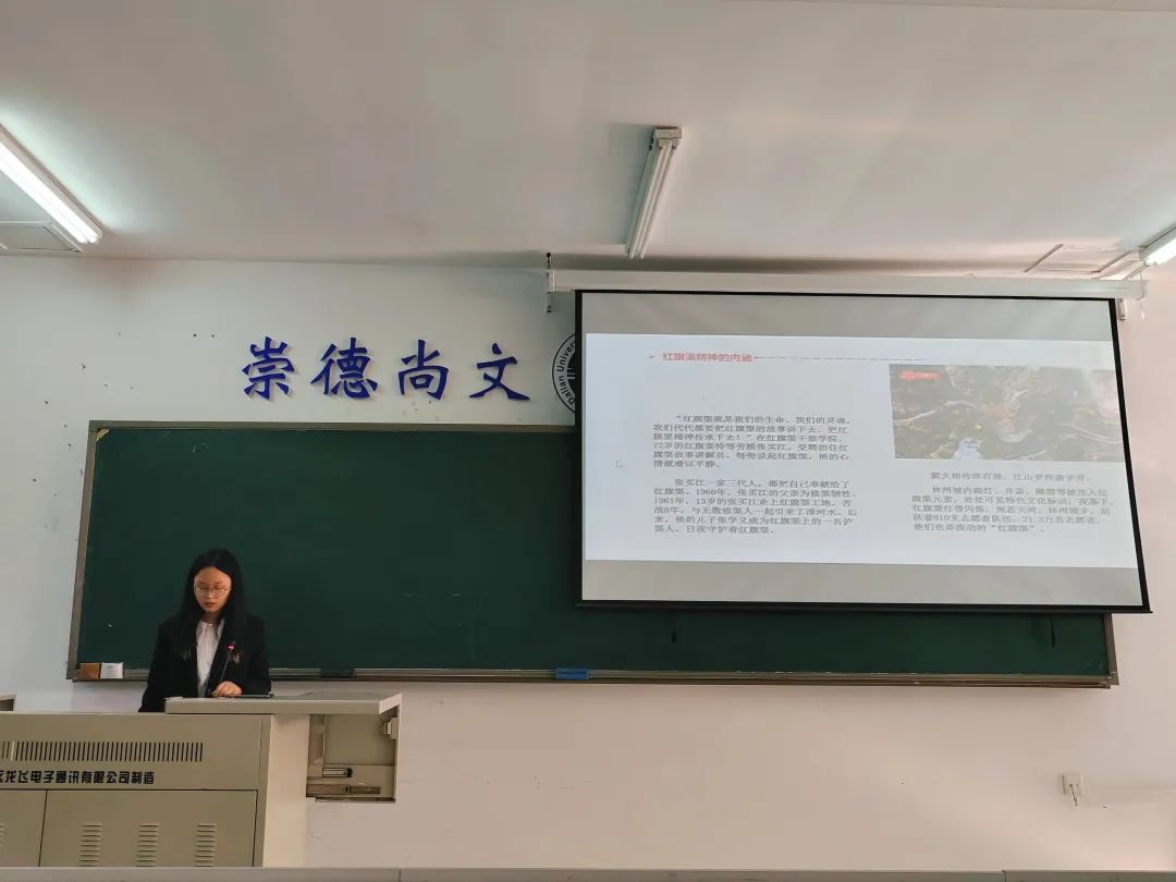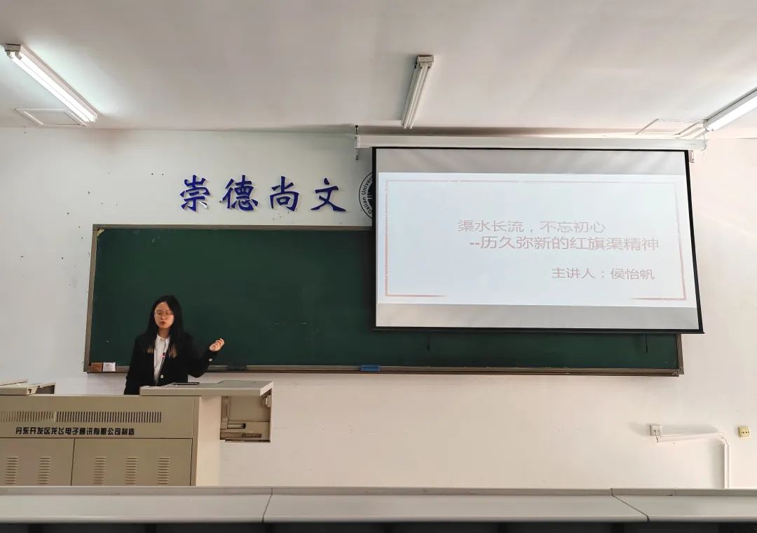 在本期活动中,侯怡帆同学以“渠水长流,不忘初心——历久弥新的红旗渠精神”作为分享主题,带领同学们回顾了艰难却光辉的长征史,勉励同学们要时刻铭记先辈英勇事迹,严于律己、坚定信念、不忘初心,做新时代的长征人,将个人发展融入国家发展,为中华民族伟大复兴事业贡献青春力量!