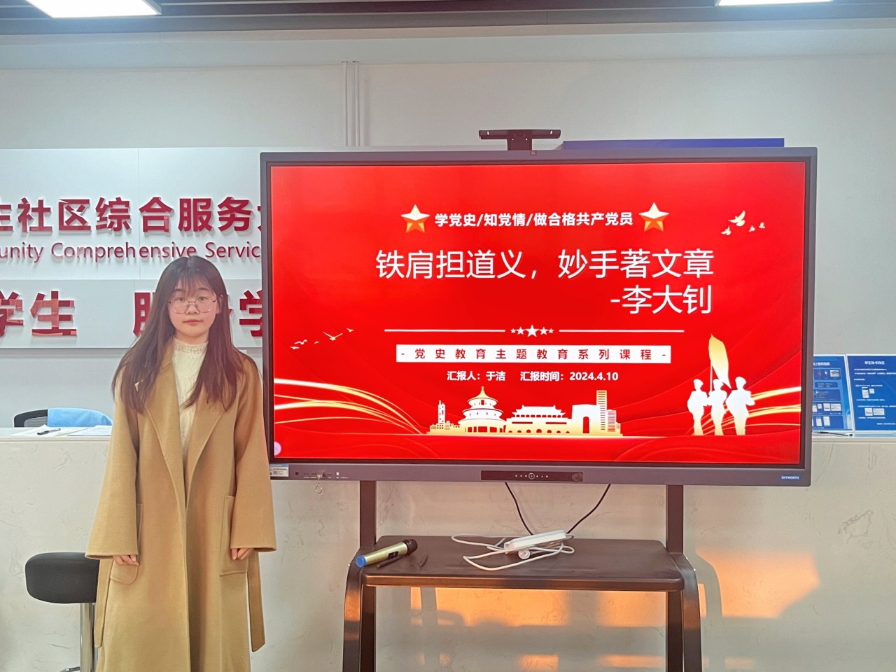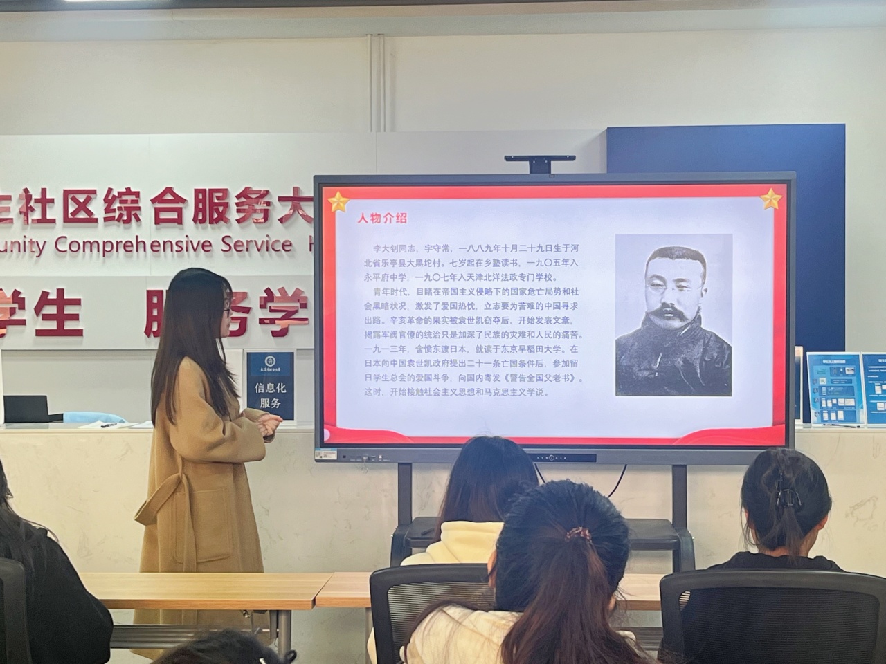 于综合楼“一站式”学生社区综合管理服务中心召开“聆听党史故事,汲取前进力量”第4期党员谈心室。本期活动邀请到中共党员于洁同学作为主讲人,让我们来聆听她的精彩分享吧。