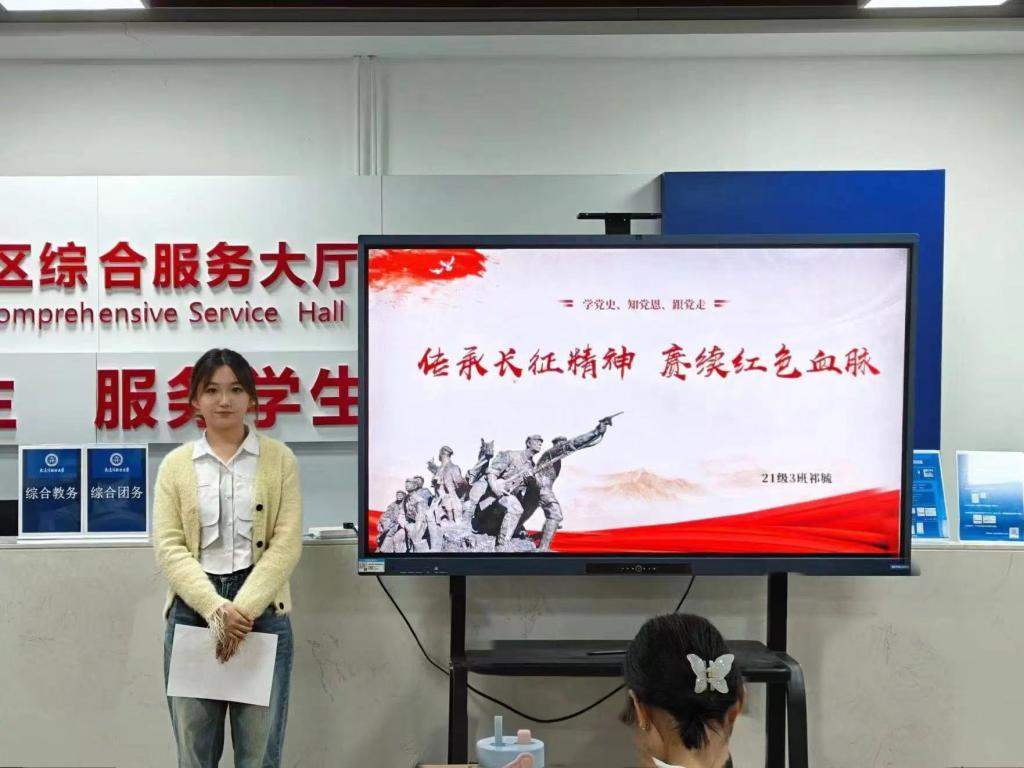 在本期活动中,祁毓同学以“传承长征精神,赓续红色血脉”为主题,向同学们讲述中国共产党和中国工农红军行万里长征路的壮阔故事。