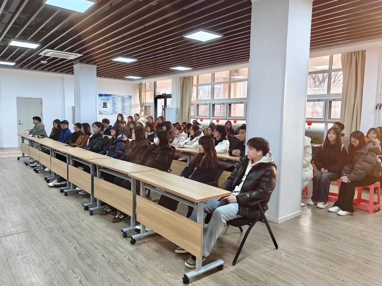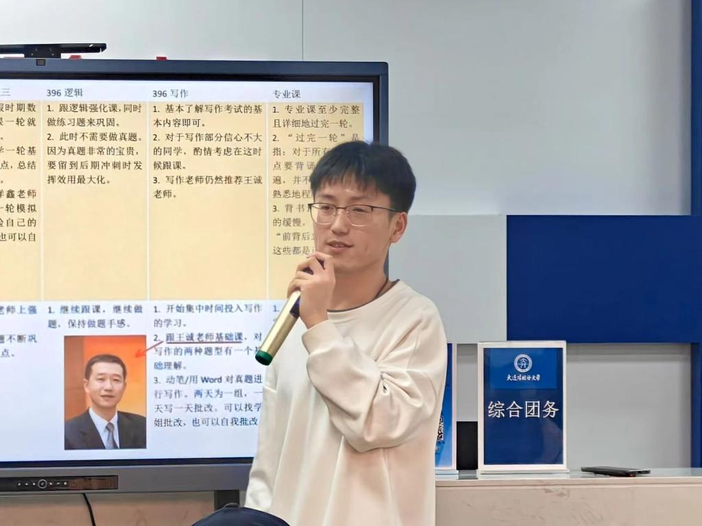 常佳智同学结合自身经验,向同学们分享考研和求职经验。他解答了考研学习任务分配、学习方法、目标院校选择等问题,建议同学们关注考研热点,互相交流。同时,介绍了行业发展趋势和企业培训策略,劝勉同学们选择高含金量培训项目,注重培训内容与个人职业目标的匹配。他希望同学们在未来道路的选择上,能够明确目标,努力前行,绘就璀璨人生长卷。