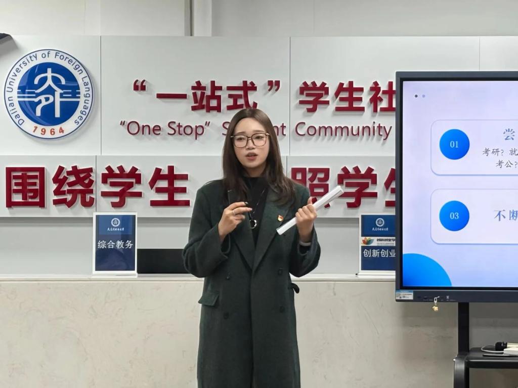 钟辰晨同学介绍了英语四级备考、职业规划的经验。她建议大家合理分配时间,积极参与学校各项比赛和实践活动,利用假期的时间多多实习,积累经验。最后她分享了自己成功过程中的秘诀:耐住寂寞,突破自我,不在意他人评价。