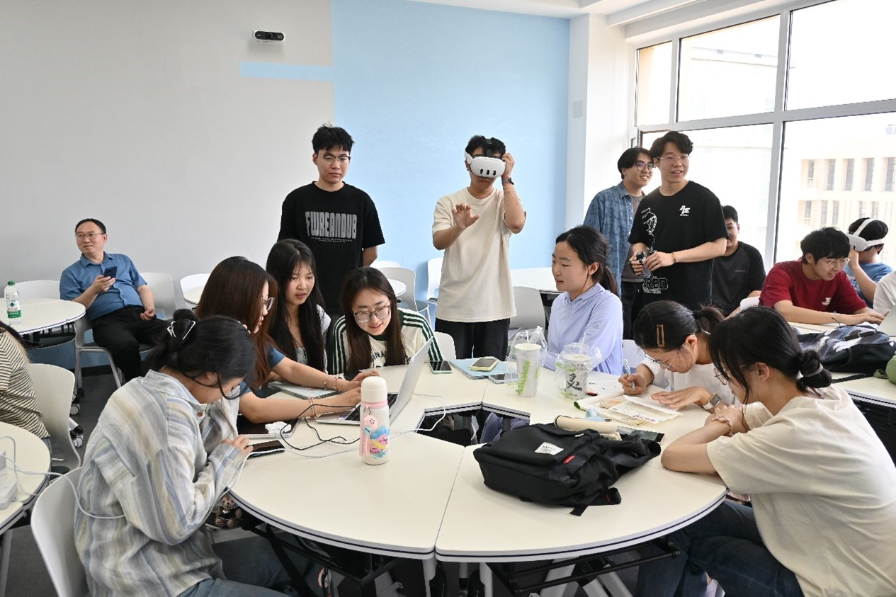 学生正在体验混合沉浸式(AR+MR)设备场景