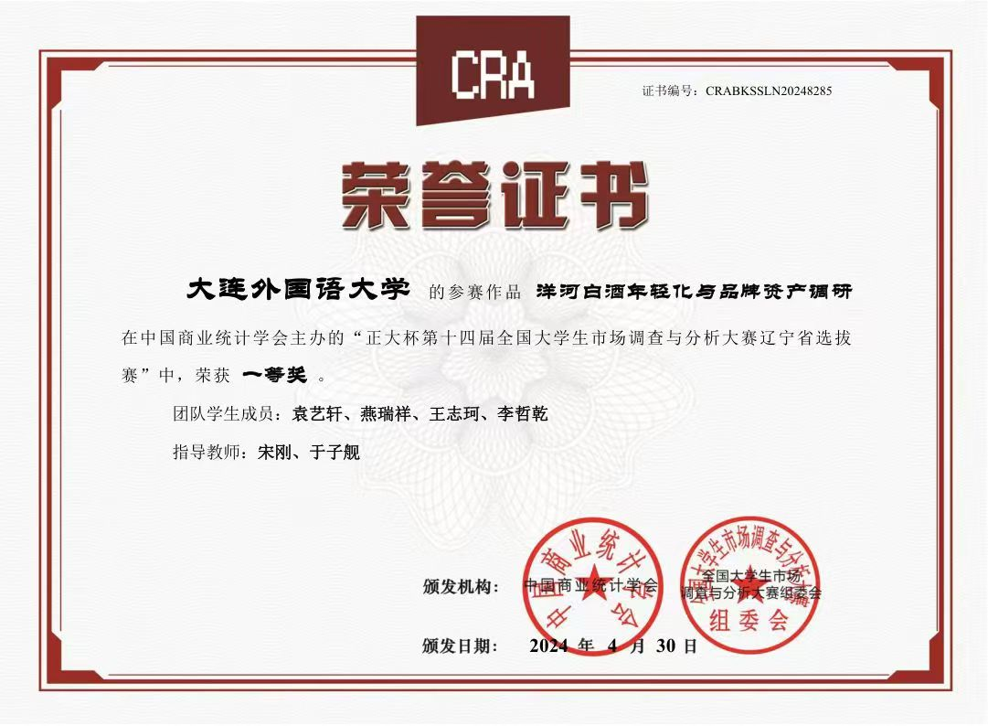 学生团队荣获“正大杯”第十四届全国大学生市场调查与分析大赛省级一等奖