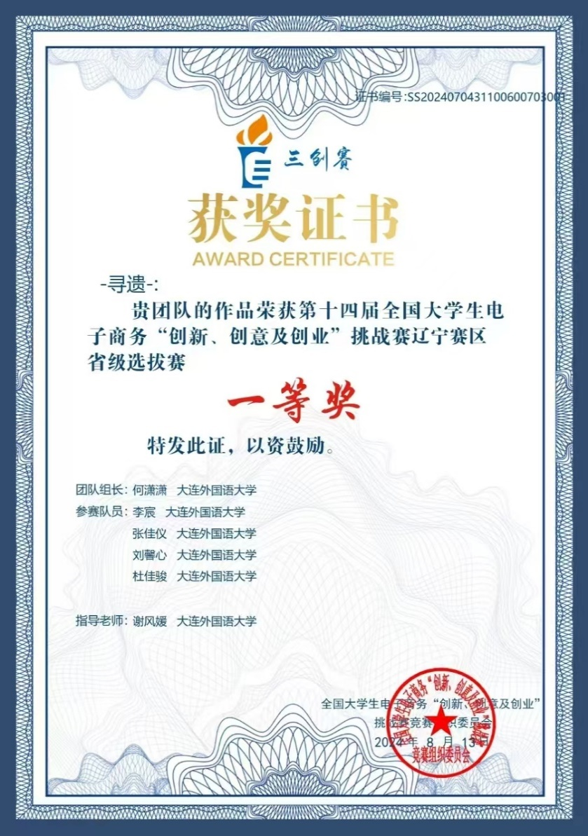 学生团队荣获第十四届全国大学生电子商务“创新、创意及创业”挑战赛省级一等奖